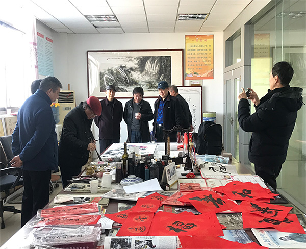 2022年元月19日上午,在辭牛迎虎到來(lái)之際,合肥高新區(qū)內(nèi)陽(yáng)光明媚,欣欣向榮,在合肥精大儀表公司工會(huì)的精心組織下,邀請(qǐng)來(lái)了以中央文史研究館書畫院安徽分院院長(zhǎng)章飚為首的10多位書畫名家,在合肥精大儀表企業(yè)的“張宜克書畫工作室”濟(jì)濟(jì)一堂專為職工書春聯(lián)、送祝福來(lái)了?;顒?dòng)給企業(yè)帶來(lái)了滿滿的祝福,也給企業(yè)發(fā)展帶來(lái)鼓舞。