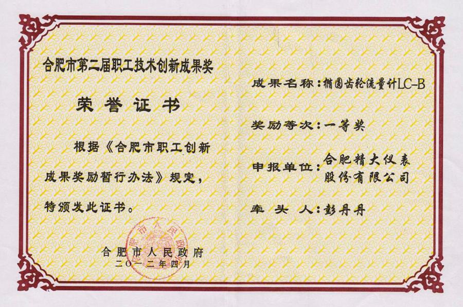 合肥市職工創(chuàng)新成果一等獎