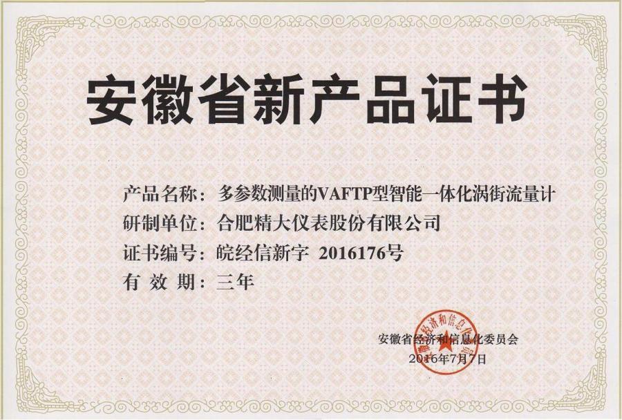 安徽省新產(chǎn)品證書(VAFTP型)