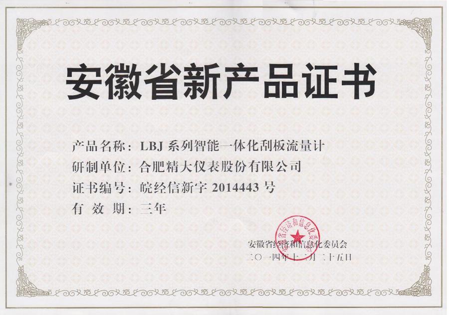 安徽省新產(chǎn)品證書(LBJ型)
